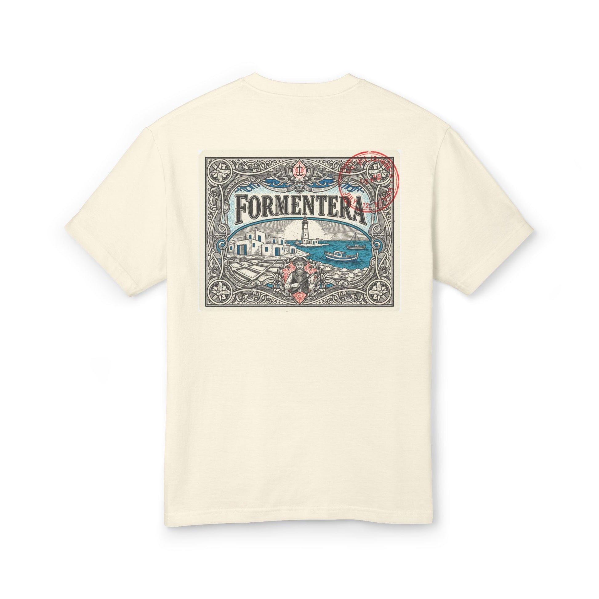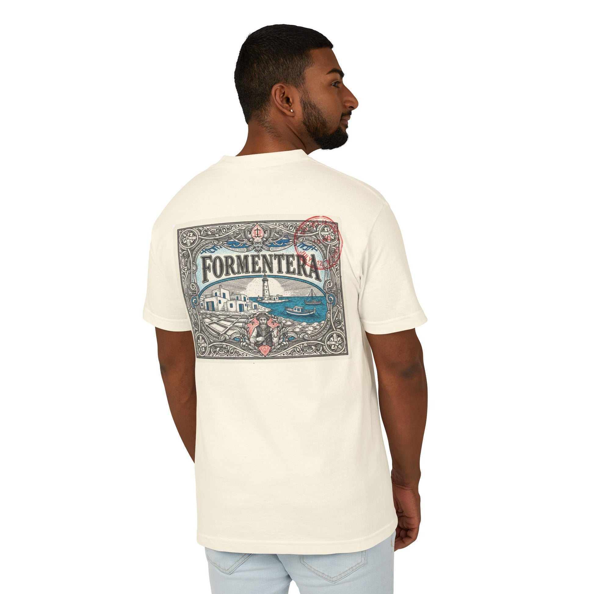 An understated essential crafted from premium heavyweight cotton, tailored for a clientele that values depth over noise and heritage over hype. The Formentera edition captures the Mediterranean’s purest expression — translating the island’s minimalist soul into a refined destination-stamp composition on the back, informed by salt-bleached palettes, Balearic typography, and the effortless calm of sun-baked stone.