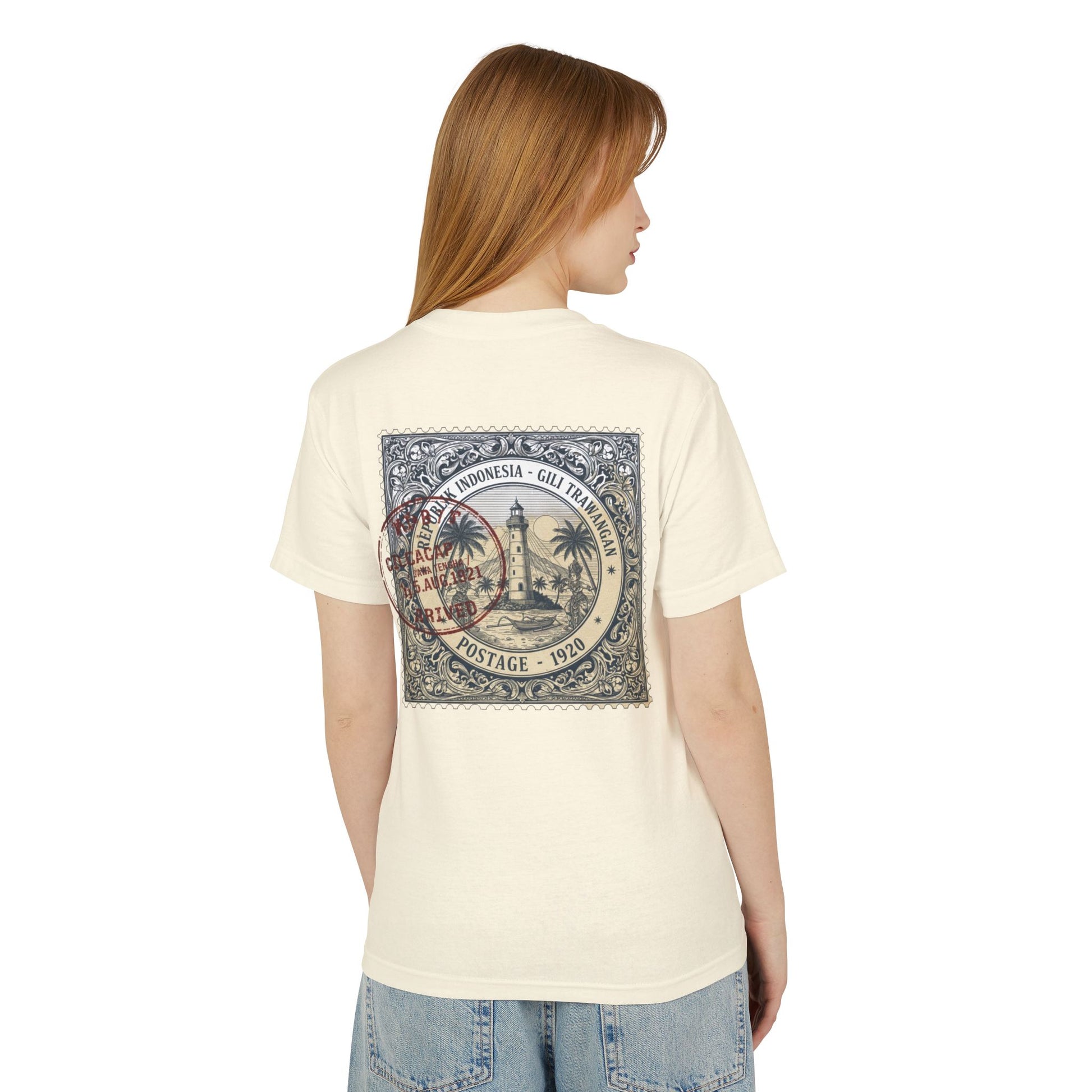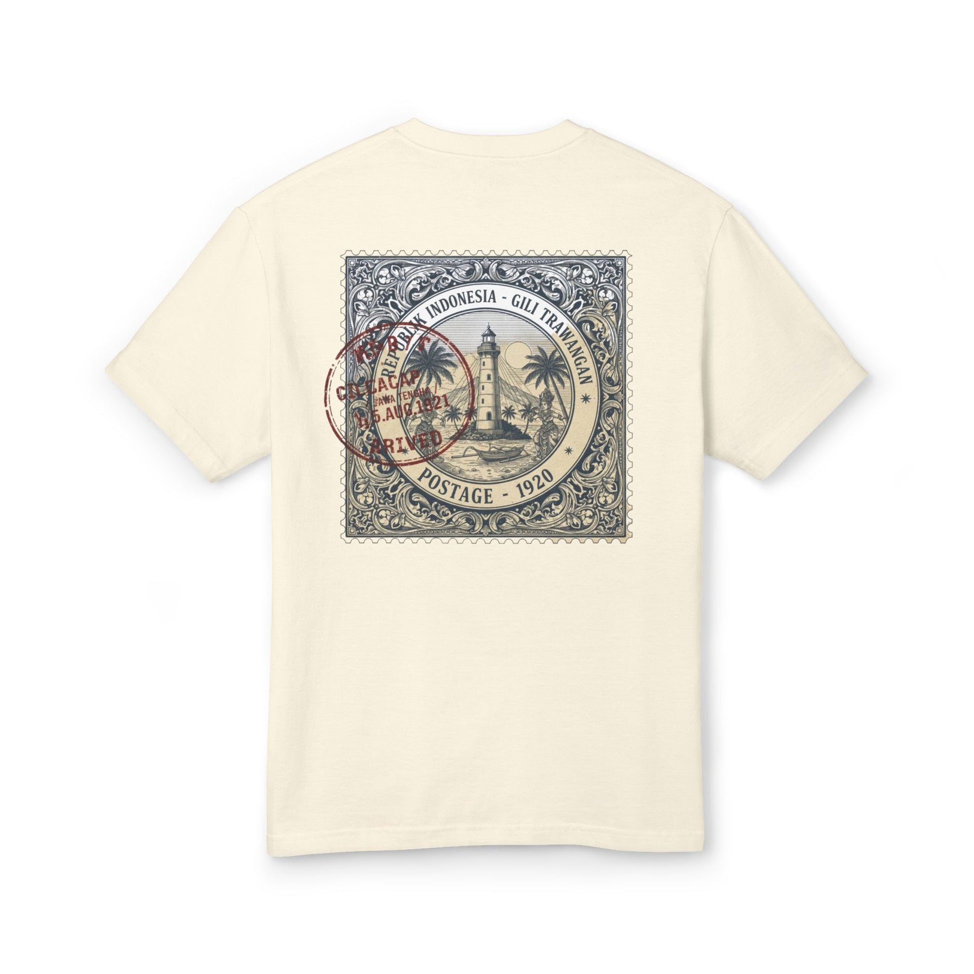 An understated essential crafted from premium heavyweight cotton, tailored for a clientele that values depth over noise and heritage over hype. The Gili T edition captures the laid-back rhythm of Indonesian island life — expressed through a refined destination-stamp composition on the back, inspired by coral-washed hues, hand-stenciled local markings, and the barefoot ease of salt-air living.