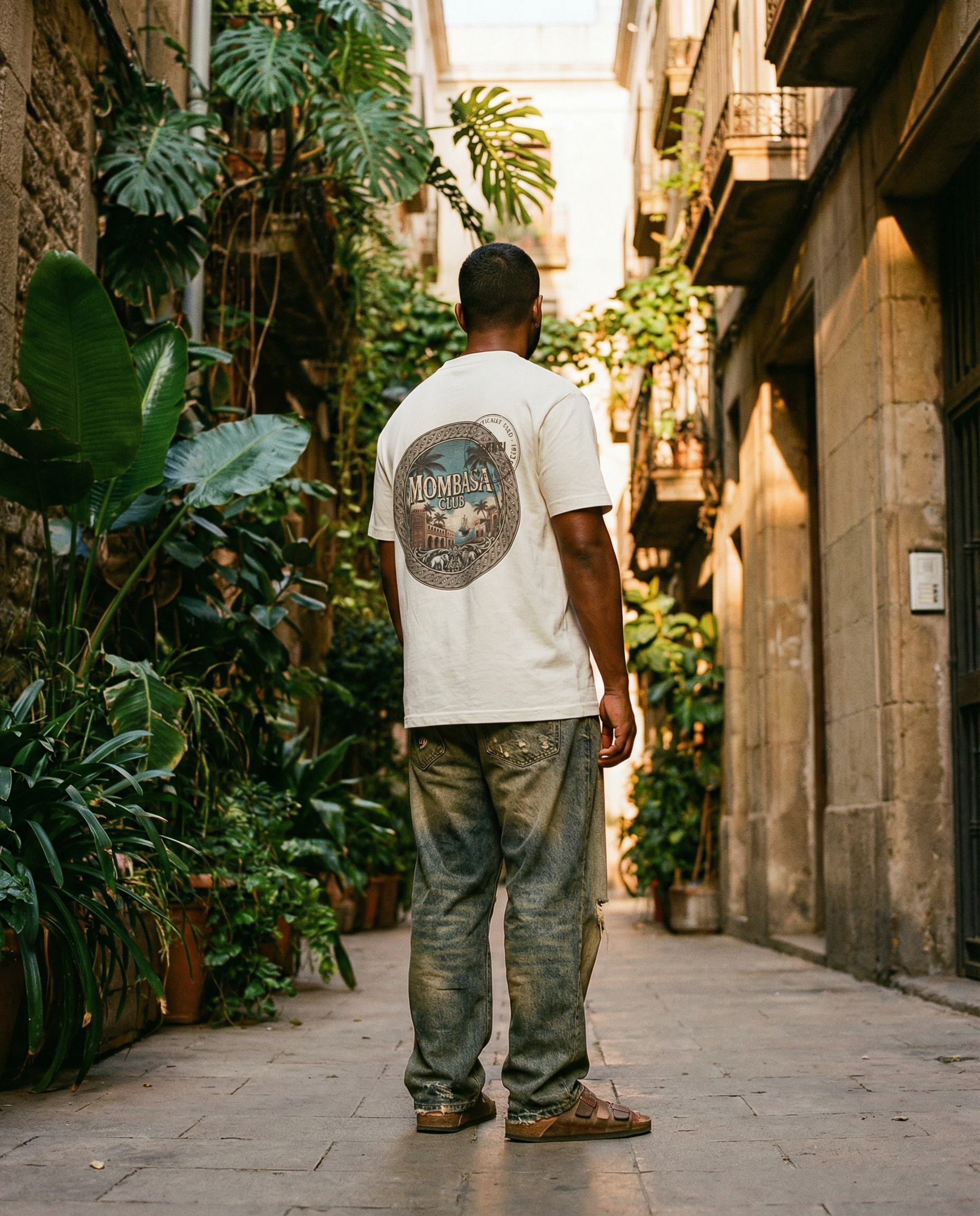 An understated essential crafted from premium heavyweight cotton, tailored for a clientele that values depth over noise and heritage over hype. The Mombasa edition frames East Africa’s coastal legacy through a refined, destination-stamp composition on the back — a visual language inspired by maritime trade routes, carved-wood motifs, and the patina of vintage travel documents.